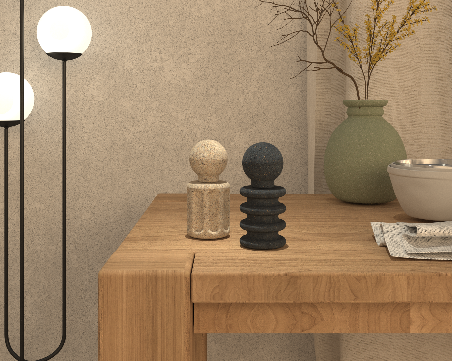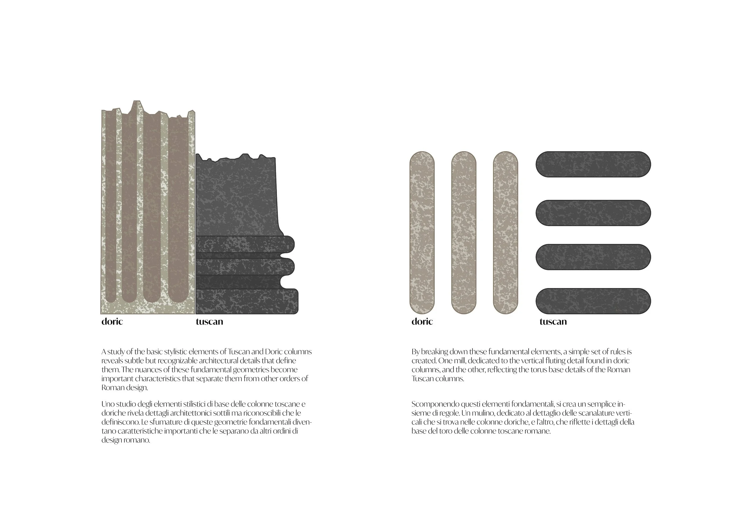These salt and pepper mills are designed to be sculptural focal points, objects that spark a conversation at the dining table and inspire each of us to find value in quality design. Going back to the most fundamental elements inspired the design and creation of the Abacus and Echinus salt and pepper mills. The architectural details found in the order of Roman columns provided the basic forms. Further studies of the proportions of the human hand provided the additional details required to fully realize the final product.